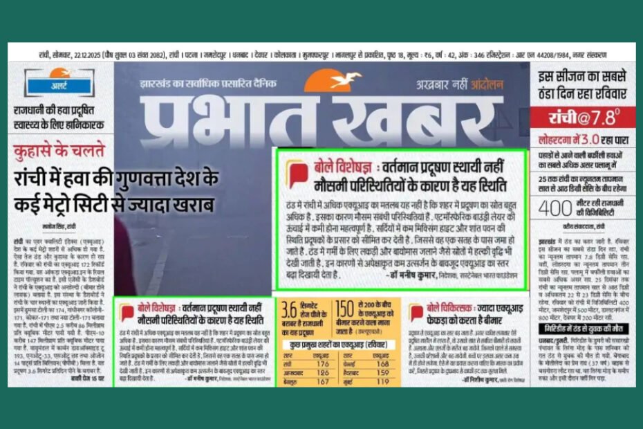 Clean air is fundamental to public health, economic productivity, and sustainable urban development. Yet, recent analysis highlighted in a report by senior journalist Manoj Singh from Prabhat Khabar, Ranchi reveals a critical governance challenge: whileBridging the Gap Between Clean Air Funding and Clean Air Outcomes in Jharkhand